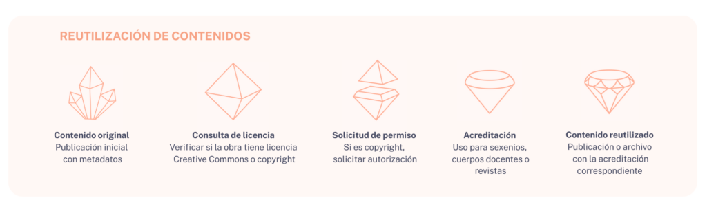 - Fíjate en la licencia con la que se difunde una obra y si necesitas reutilizar contenido (texto o imagen) de la misma: